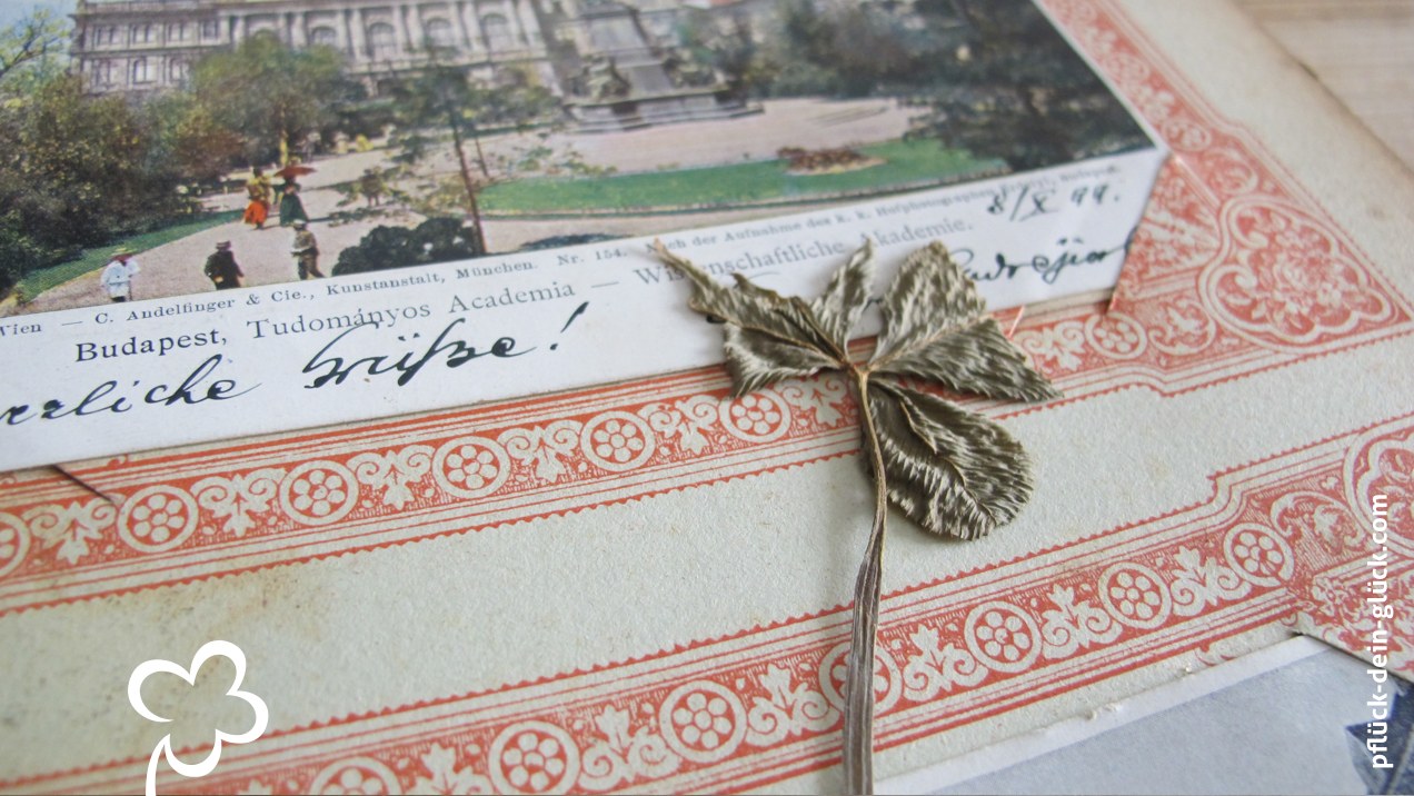 Alt. Älter. Am ältesten! Diesen Klee habe ich in einem Postkarten-Sammelbuch meiner Urgroßtante entdeckt. Verschickt wurde die Karte am 8. Oktober 99. Das vorletzte 99, also 1899. Für sein hohes Alter ist er immer noch gut erhalten. Denn auch wenn (mehr …)